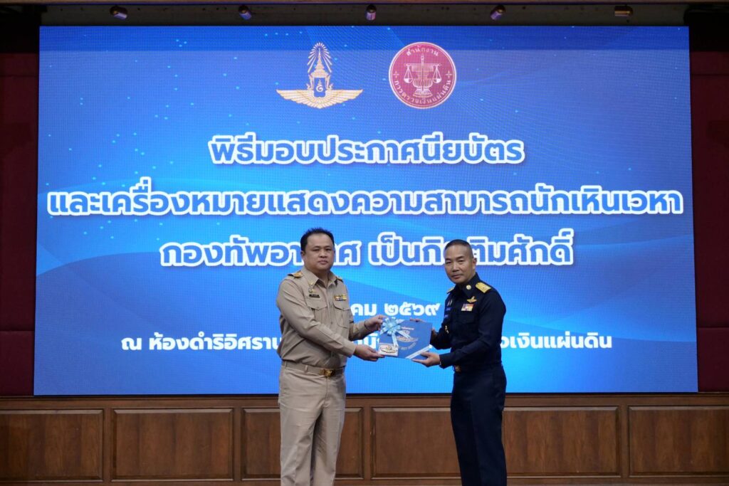 วันพฤหัสบดีที่ 5 มีนาคม 2569 เวลา 13.00 น. พลอากาศเอก เสกสรร คันธา ผู้บัญชาการทหารอากาศ เป็นประธานในพิธีมอบประกาศนียบัตรและเครื่องหมายแสดงความสามารถนักเหินเวหากองทัพอากาศ เป็นกิตติมศักดิ์ โดยมีนายมณเฑียร เจริญผล ผู้ว่าการตรวจเงินแผ่นดิน และผู้บริหารสำนักงานการตรวจเงินแผ่นดิน เข้าร่วมพิธี ณ ห้องดำริอิศรานุวรรต สำนักงานการตรวจเงินแผ่นดิน โดยนายอาทิตย์ พุทธิศักดิ์แสง ผู้อำนวยการสำนักตรวจเงินแผ่นดินจังหวัดมหาสารคาม ได้เข้าร่วมรับมอบประกาศนียบัตรและเครื่องหมายแสดงความสามารถนักเหินเวหากองทัพอากาศ เป็นกิตติมศักดิ์ ในครั้งนี้ด้วย