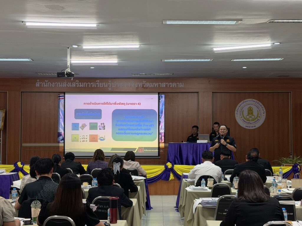 วันที่ 24 มีนาคม 2569 เวลา 13.00 น. นายอาทิตย์ พุทธิศักดิ์แสง ผู้อำนวยการสำนักตรวจเงินแผ่นดินจังหวัดมหาสารคาม พร้อมด้วยข้าราชการสำนักตรวจเงินแผ่นดินจังหวัดมหาสารคาม ร่วมเป็นวิทยากร “โครงการฝึกอบรมเสริมสร้างสมรรถนะด้านการบริหารการเงินและพัสดุภาครัฐ สำหรับผู้บริหารสถานศึกษา ข้าราชการ และผู้ปฏิบัติงาน” โดย สำนักงานส่งเสริมการเรียนรู้ประจำจังหวัดมหาสารคาม (สกร.) ณ ห้องประชุมสำนักงานส่งเสริมการเรียนรู้ประจำจังหวัดมหาสารคาม อำเภอเมืองมหาสารคาม จังหวัดมหาสารคาม เพื่อสร้างความรู้ความเข้าใจให้กับผู้บริหารและบุคลากรของสำนักงานส่งเสริมการเรียนรู้ประจำจังหวัดมหาสารคาม เพื่อให้การใช้จ่ายเงินแผ่นดินเป็นไปอย่างมีประสิทธิภาพและยั่งยืน